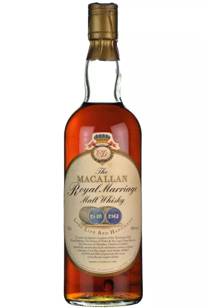 威士忌大牌Macallan当时也发布了一款限量版“Royal Marriage”,最初零售价仅仅20英镑,如今却轻轻松松就能拍卖到2000英镑!