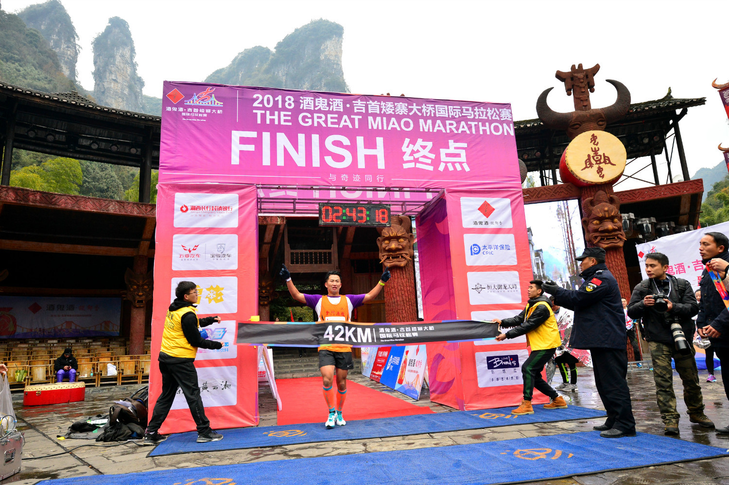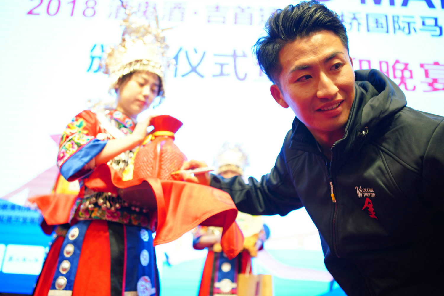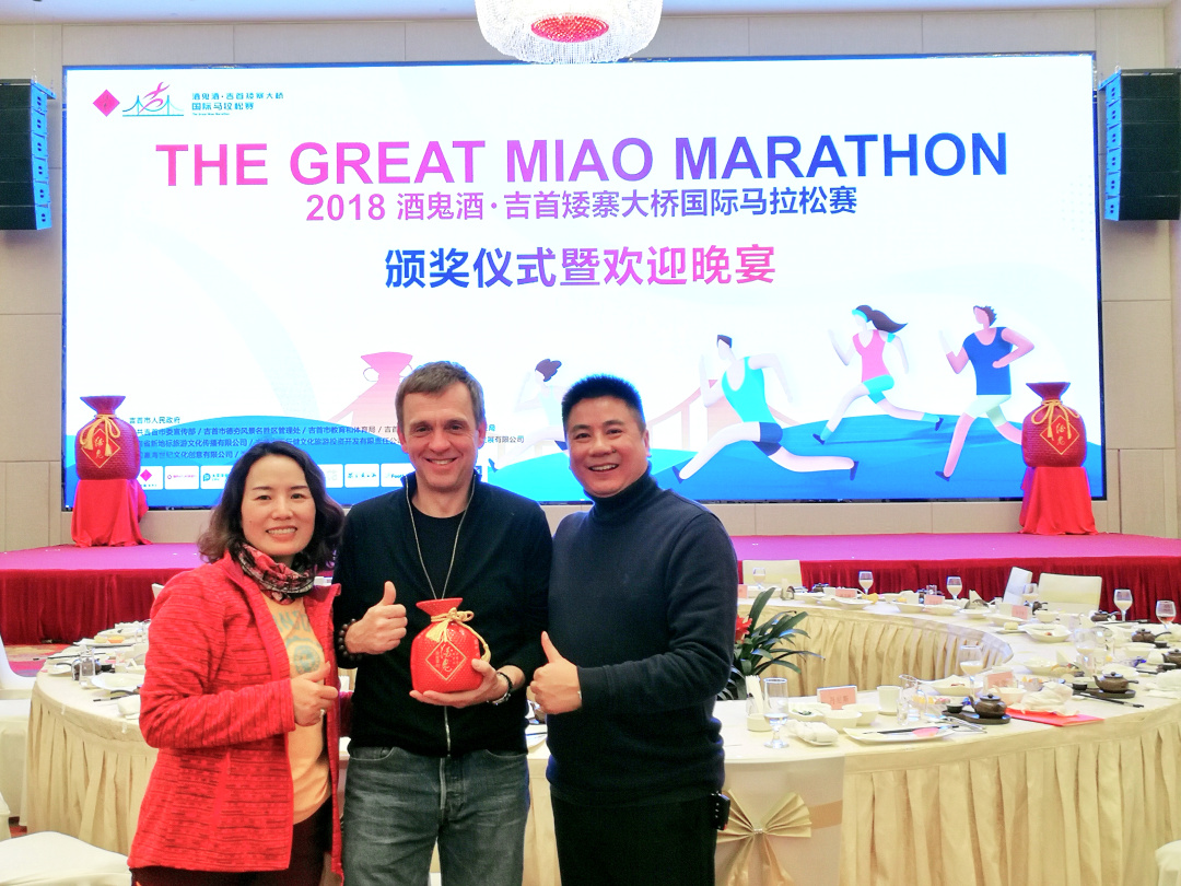 冠军获得者黄世昌先生特别兴奋,说参加很多国际比赛,今天的42公里堪称最美丽最独特的赛道,穿越苗寨的感觉太奇特神秘了,虽然天气寒冷,但是真正体会到了“云端上的燃情奔跑”,希望每年都能来这里比赛。丹尼斯希望明年的赛事能把酒鬼酒厂区纳入比赛线路。