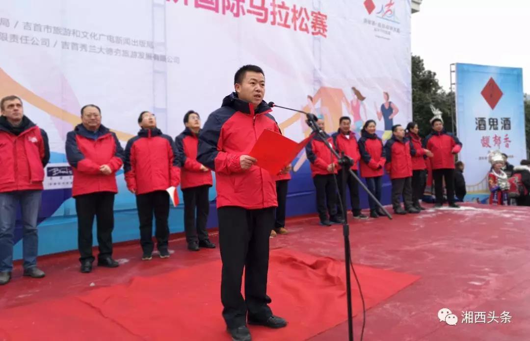 今天的吉首,温度骤降到零下3℃,冰雪装扮了秀美湘西,矮寨大桥景区赛道两旁玉树琼枝,晶莹剔透。吉首市委副书记市人民政府市长李诗兴进行致辞。八点半湘西自治州人民政府副州长李平准时鸣枪开赛。