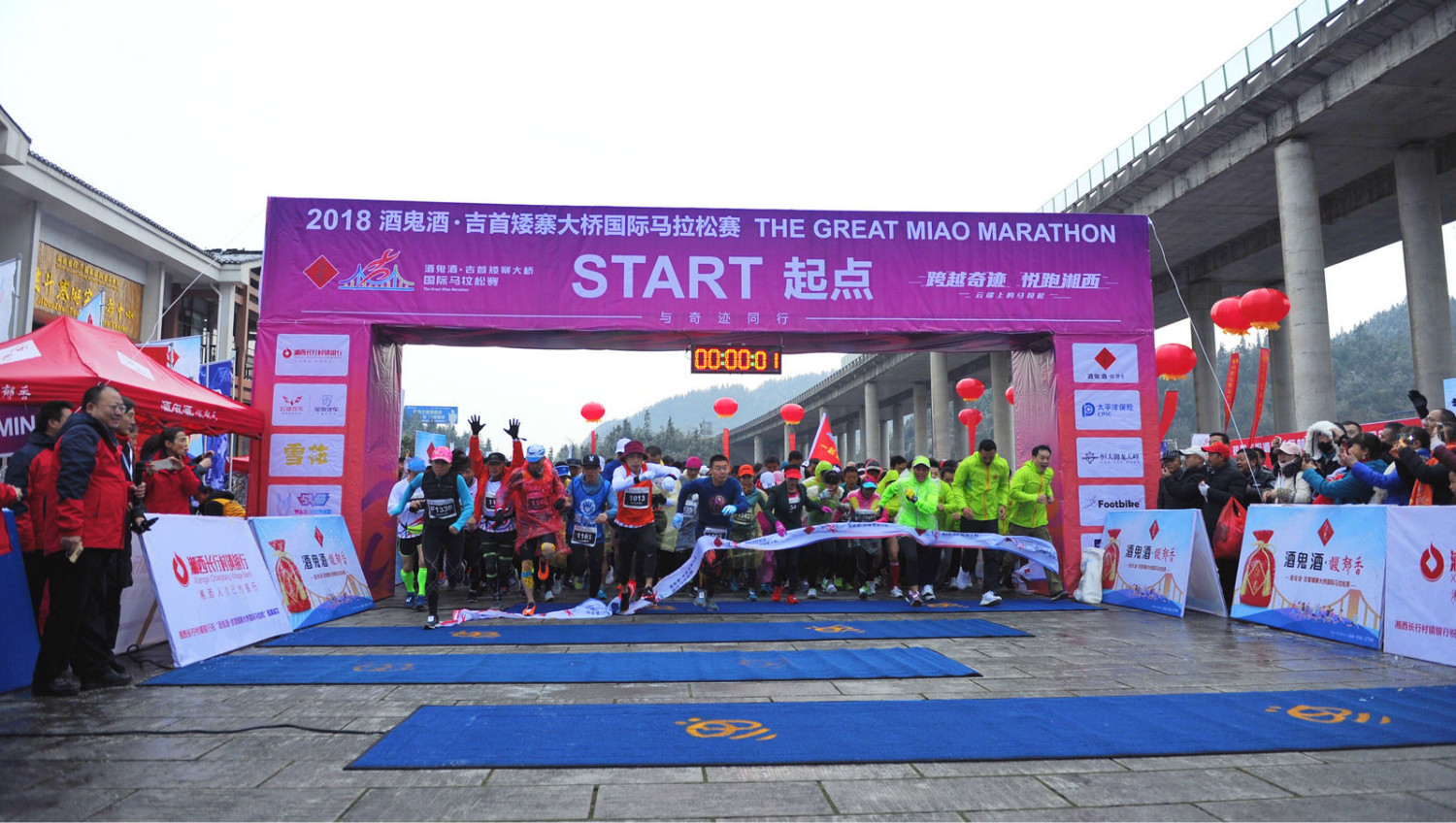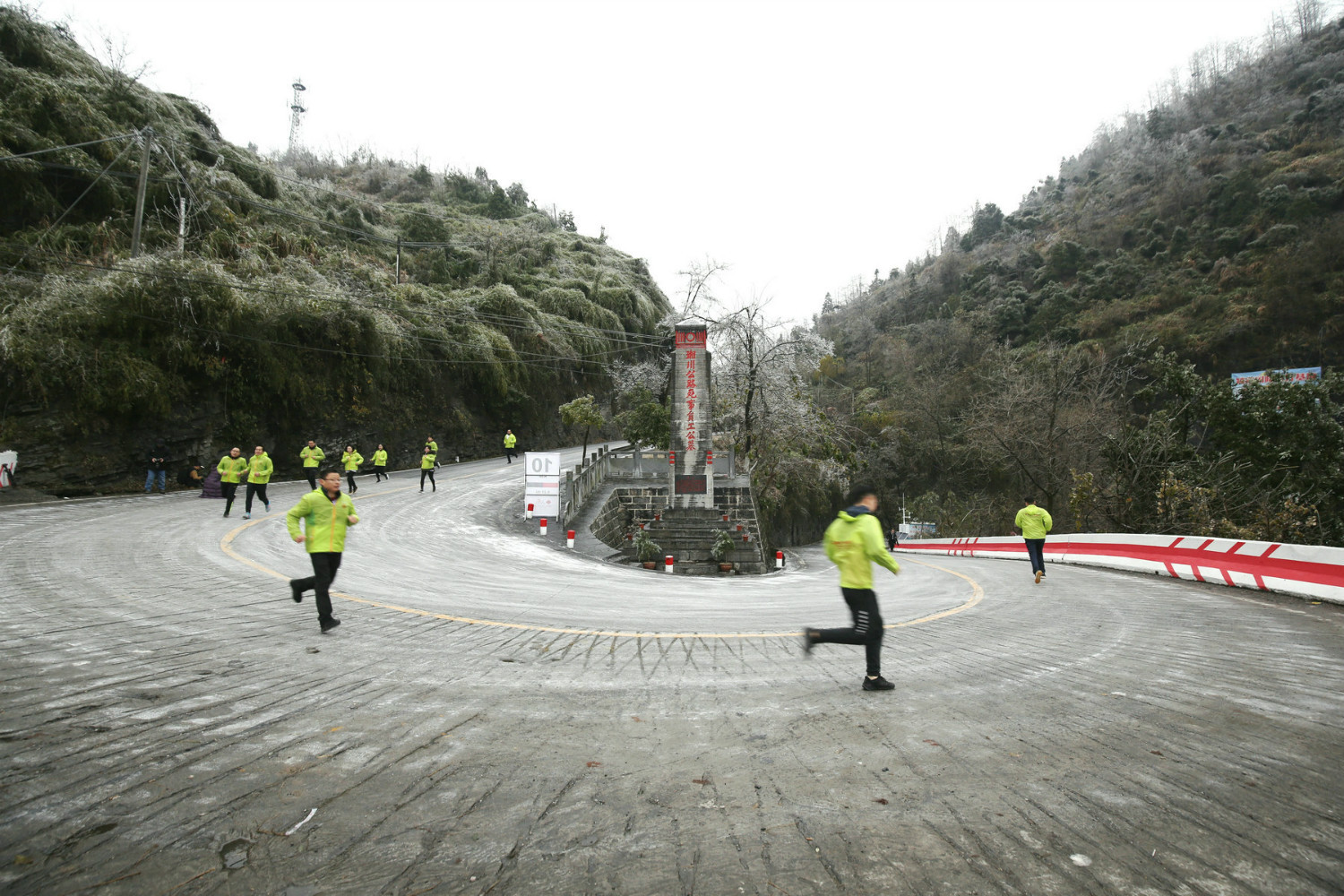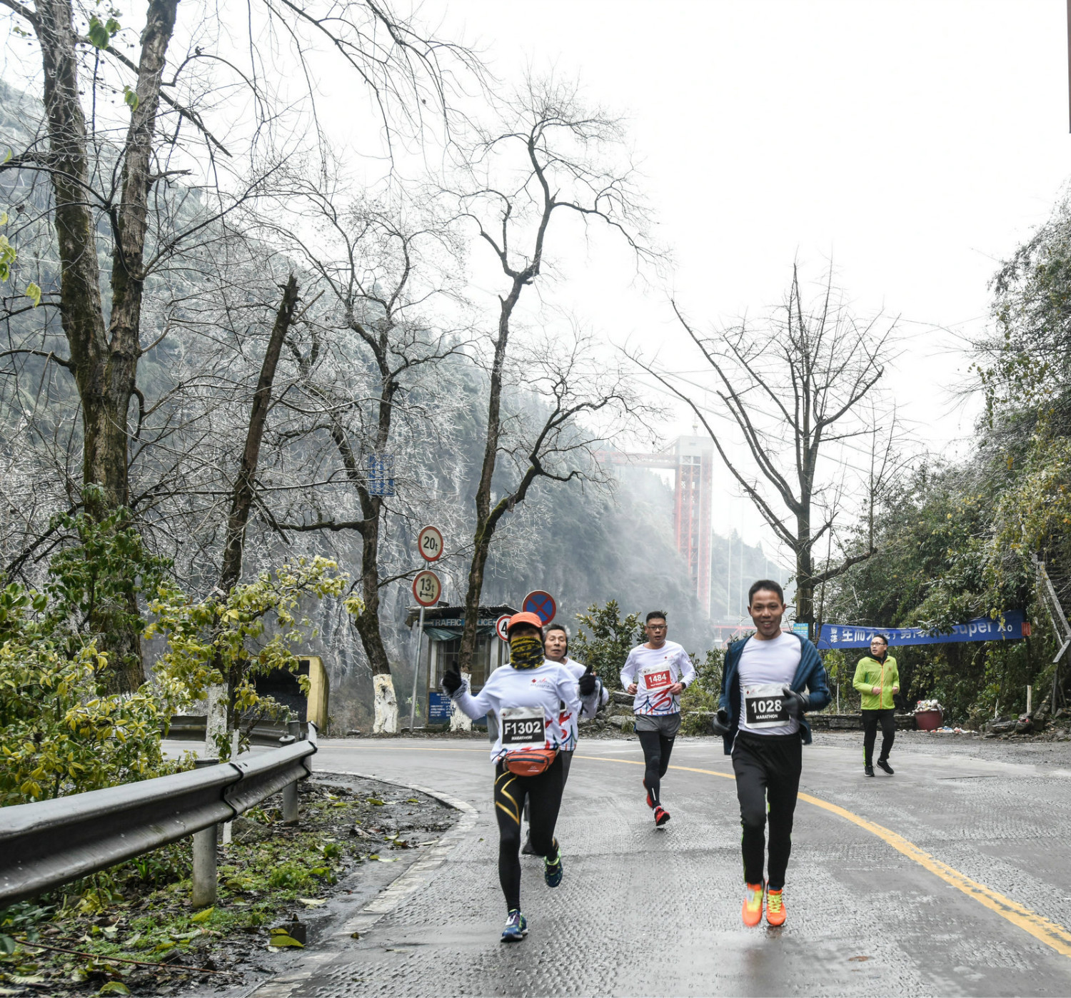 冰雪中的首届酒鬼酒·吉首矮寨大桥国际马拉松