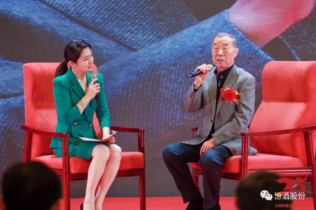 25年前,山西汾酒的上市工作得到了很多人的支持与帮助,汾酒精心准备了一个特别的感恩环节,向他们致敬。郭裕怀先生作为代表接受主持人采访。他说,汾酒当年的上市之路困难重重,大家用超人的精神和毅力,蹚出了一条具有汾酒特色的上市之路。